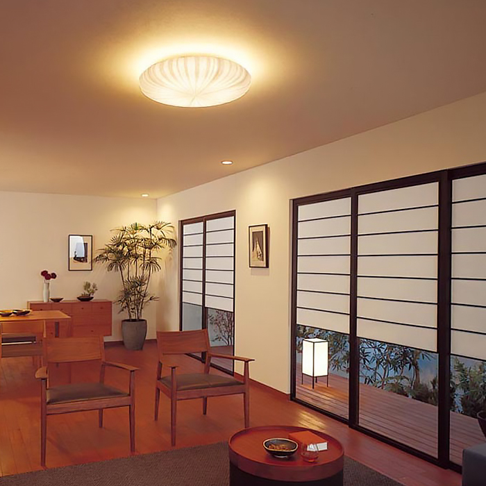 琉球畳の部屋に設置しました。木のタイプと悩みましたがモダンな雰囲気のこちらを選びました。十分な明るさがあるのでリモコンの明るさ調節機能は便利です。
