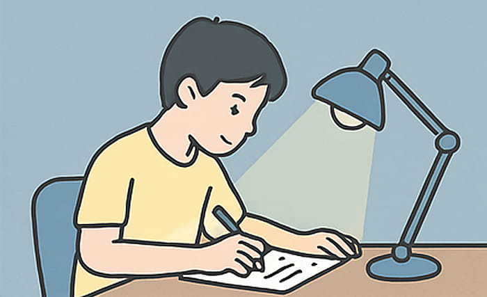 学習中に影がノートに落ちると集中力が途切れます。利き手に合わせてライト位置を変えましょう。