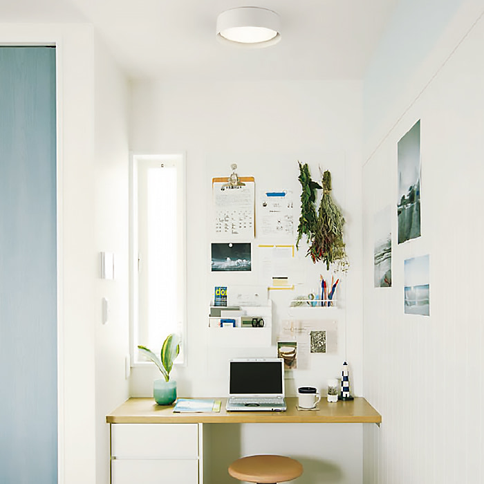 部屋のメイン照明をダウンライトやシーリングライト、ペンダントライト、シーリングスポットライトとして、補助的にデスク面や手元を明るくする照明としておすすめします。